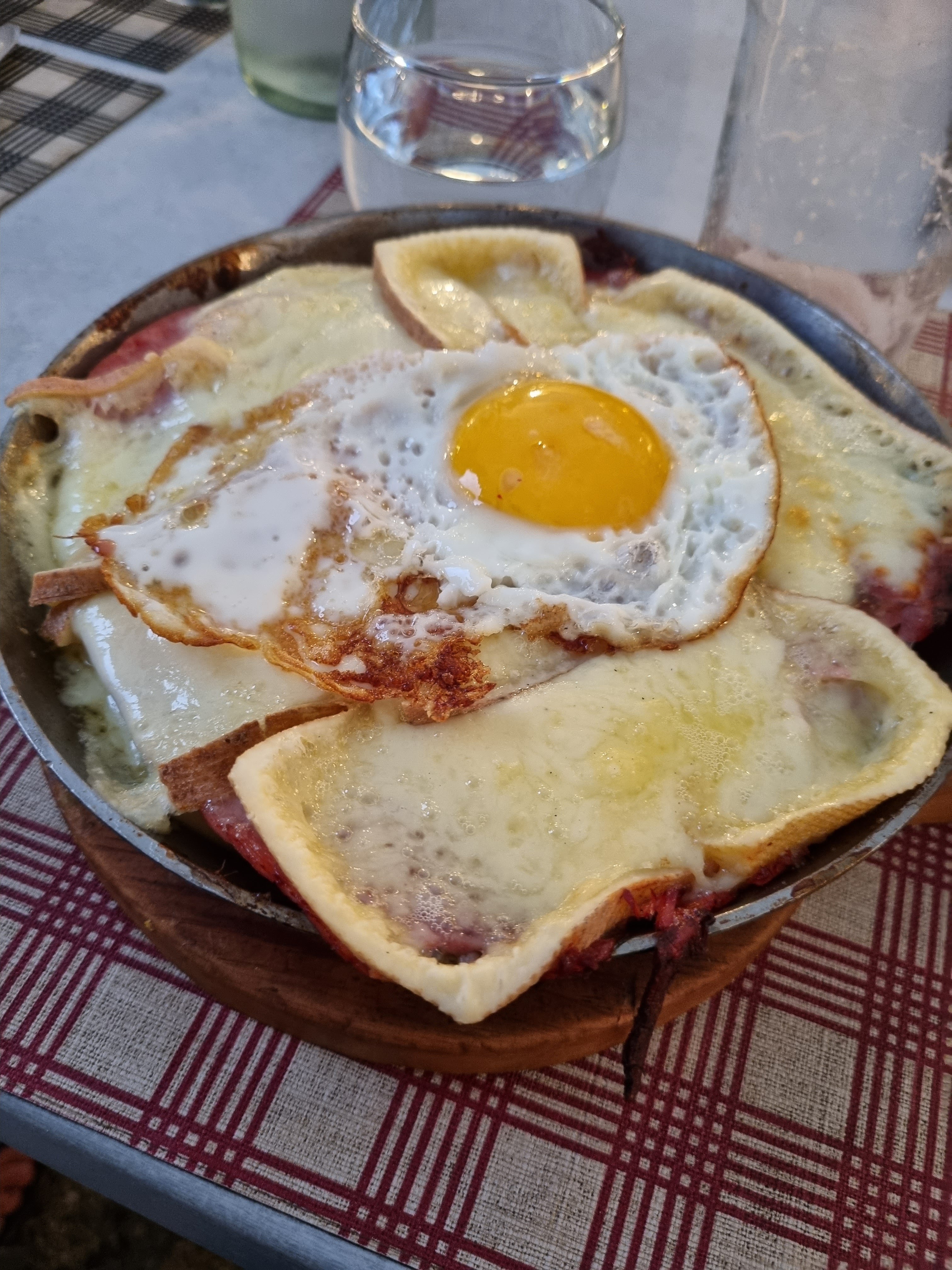 Pour le déjeuner d'aujourd'hui , j'ai mangeé une croûte valaisanne ... très bon, copieux en quantité, avec une 'petite' bière maison. Et en plus, les patrons sont sympa comme tout.