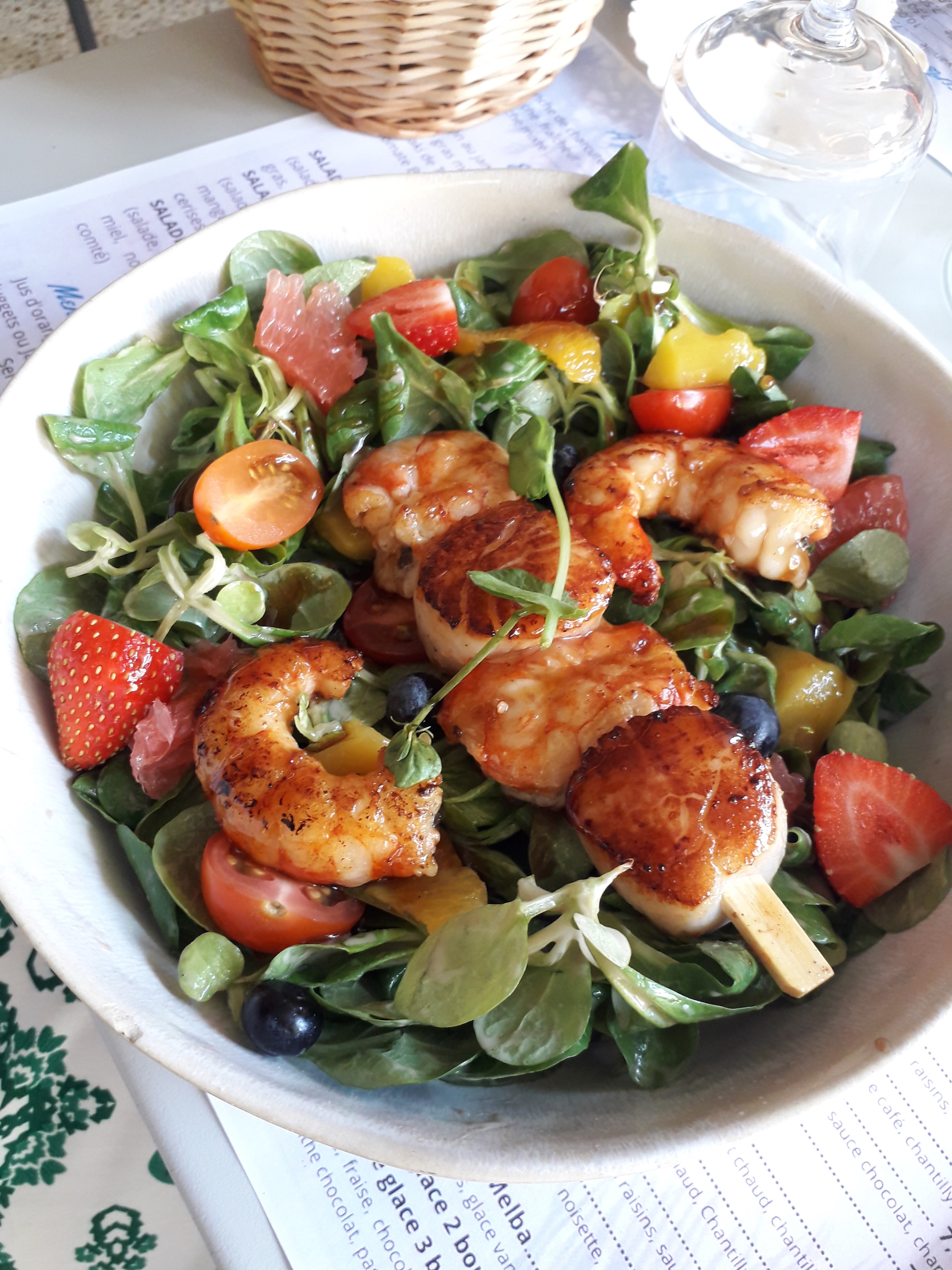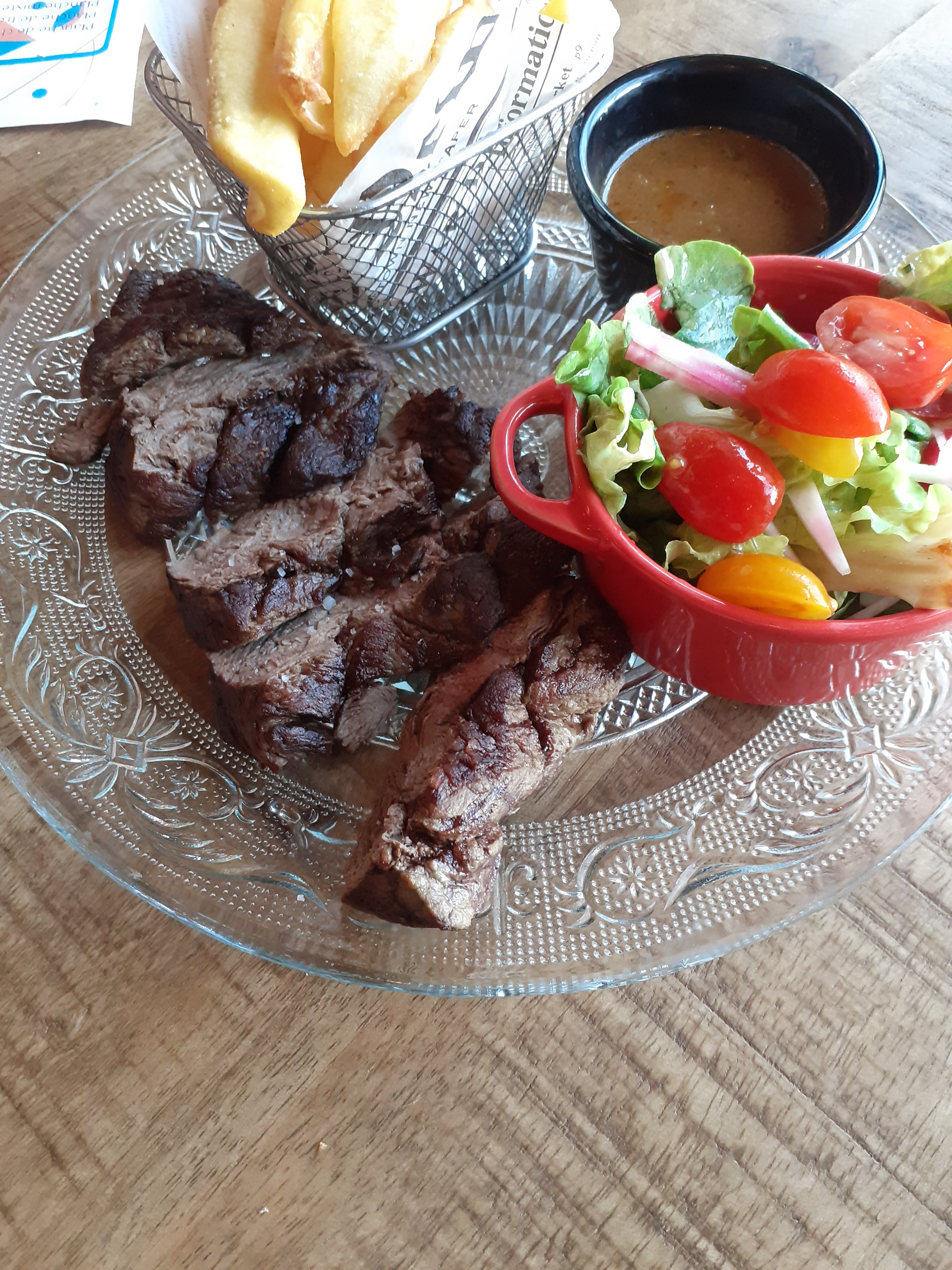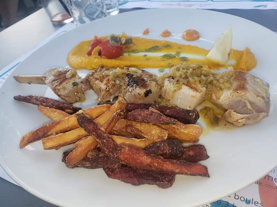 Un moment agréable. Le restaurant est climatisé : on peut en profiter pour se régaler. Très bon. Un plateau en entrée sublime avec des produits de la mer entre autres : très frais délicieux, présentés avec des fraises 😜 Un accueil tres appréciable.