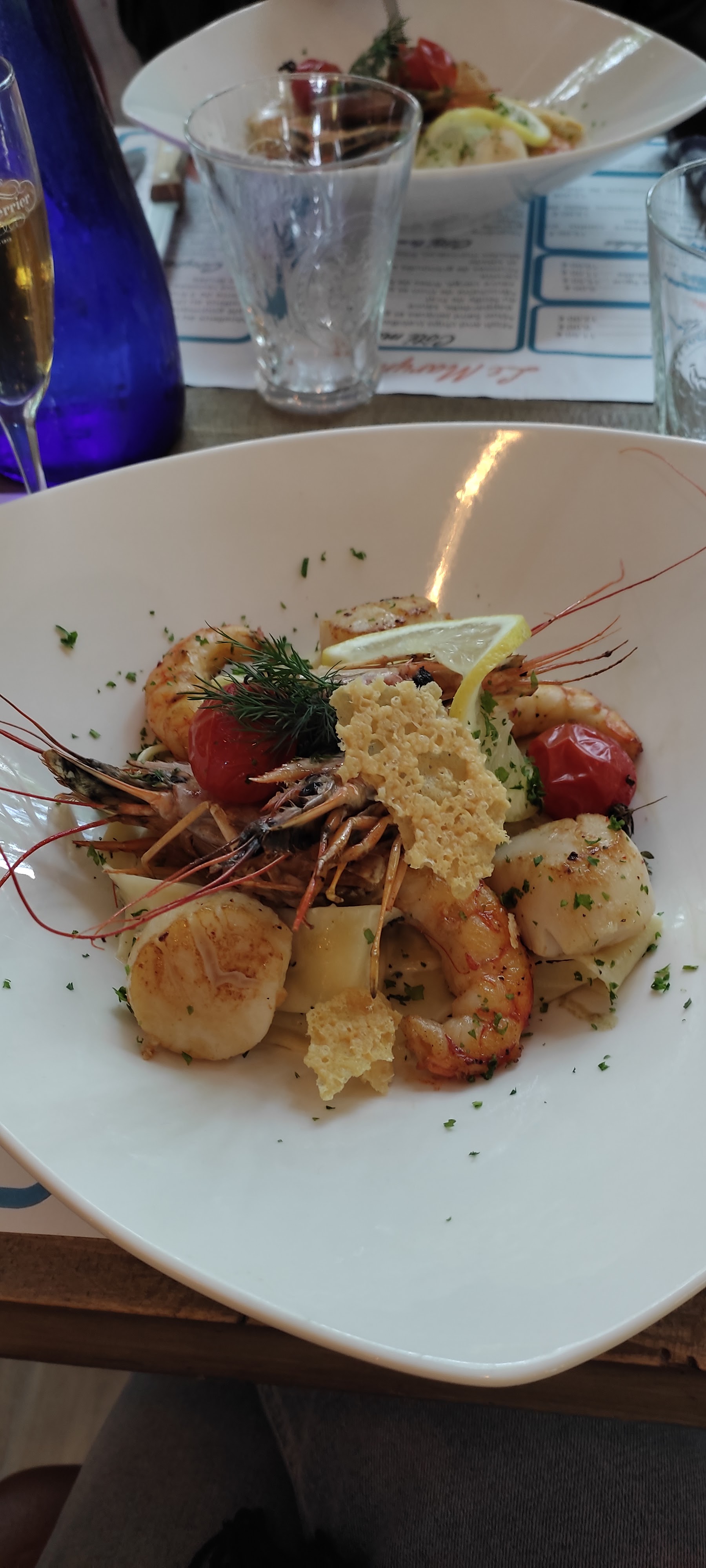 Endroit très charmant, agréable. Les plats sont jolis et goûteux. 3 étoiles car l'attente à été pénible (avec un bébé de 18 mois) et les frites sont arrivées froides( on nous a proposé de les refaire, mais plus le temps d'attendre encore..)Les prix sont également un peu élevés pour une brasserie. Néanmoins, ce lieu mérite le détour de part son cadre. Plusieurs visites dans ce lieux ont suivi: bilan: hors saison estivale, et sans enfants, c'est top! Peu d'attente, et personnel moins stressé, et beaucoup plus souriant du coup. Très bon. La quantité m'a suffit, mais pour un homme, je pense que ça aurait fait léger ( saint jacques crevettes tagliatelles) Un délice, un décor très agréable. Merci