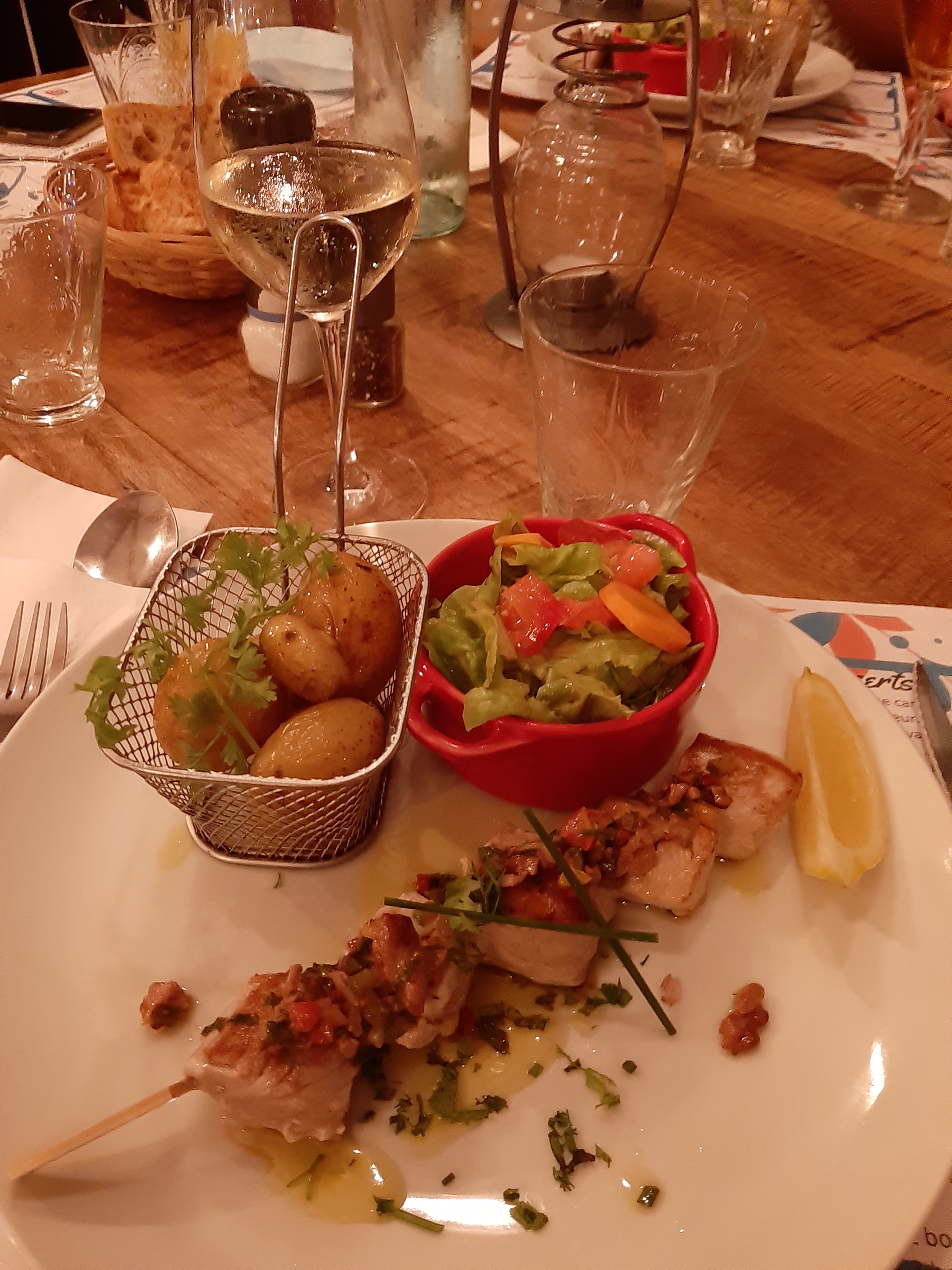 Petit repas à 4 Service nickel Moules marinières bonne , l’oignon remplacé par l’échalote , mais Ça passe , les salades sont compteuse . On reviendra