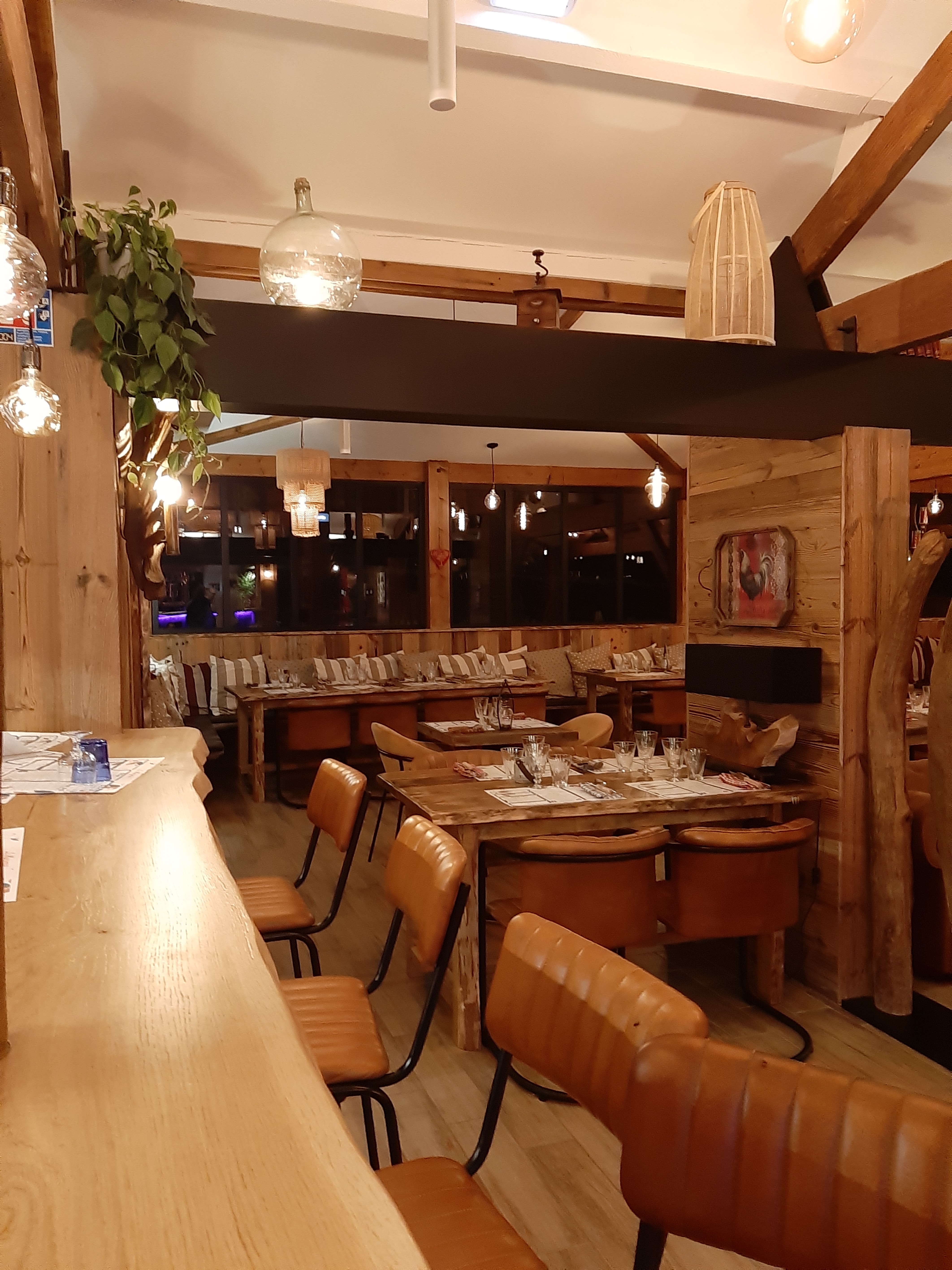 Venus entre amis pour de belles retrouvailles un soir sur le dernier service, nous avons adoré l'ambiance chaleureuse qu'offre la décoration des lieux, même si nous n'avons pas pu profiter des extérieurs, il faisait déjà nuit. D'ailleurs, rajouter un éclairage entre le parking et l'entrée serait top ! Les plats sont très bons et le rapport qualité-prix est excellent ! Nous estions d'humeur festive et bruyants mais l'équipe s'est montrée patiente alors merci à vous et à bientôt !