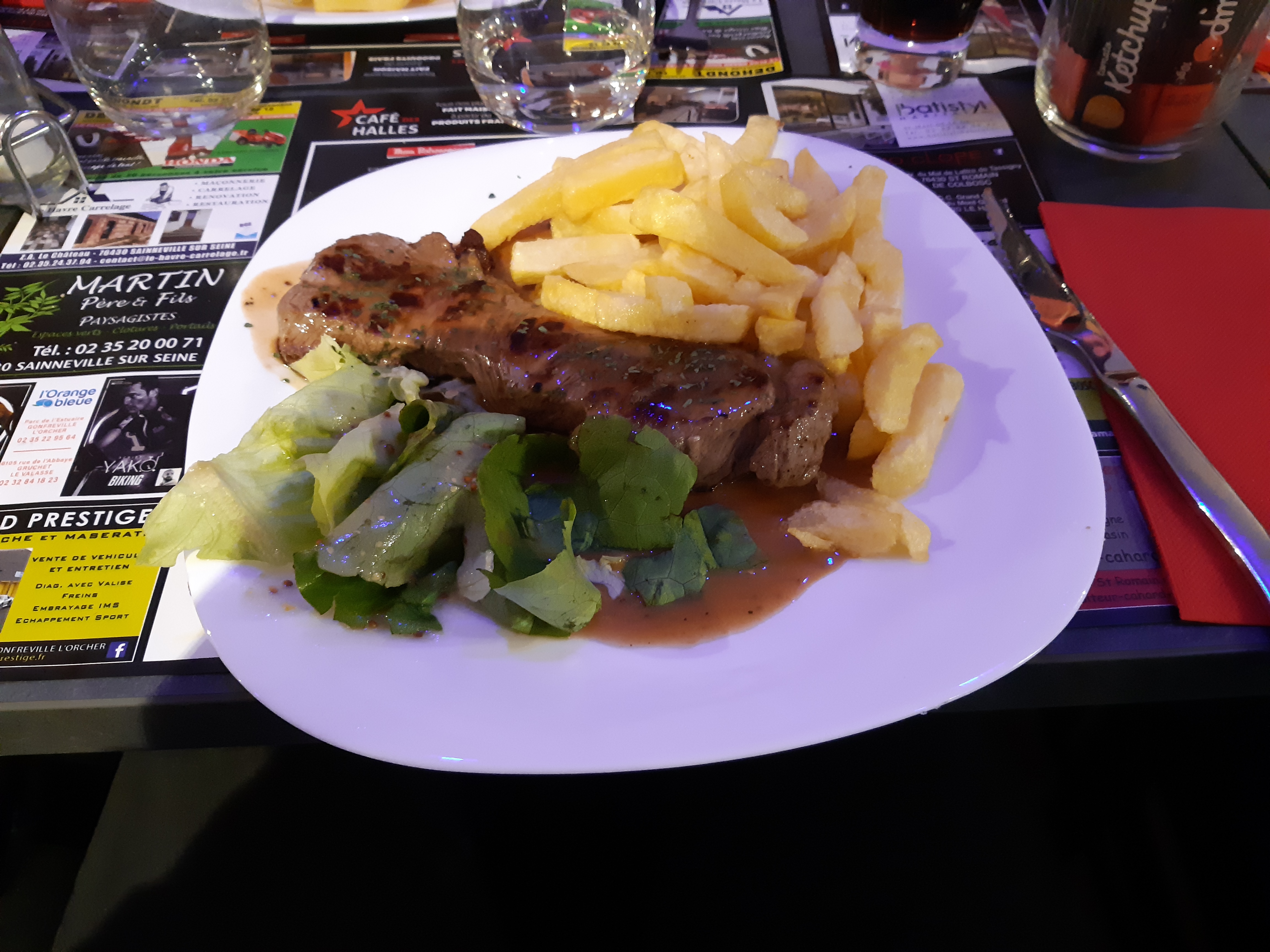 Le hasard de la route et de l'heure, nous ont conduits au café des Halles. Nous avons passé une bonne soirée et nous avons bien mangé, merci à toute l'équipe,la prochaine fois ne sera pas lié au hasard.