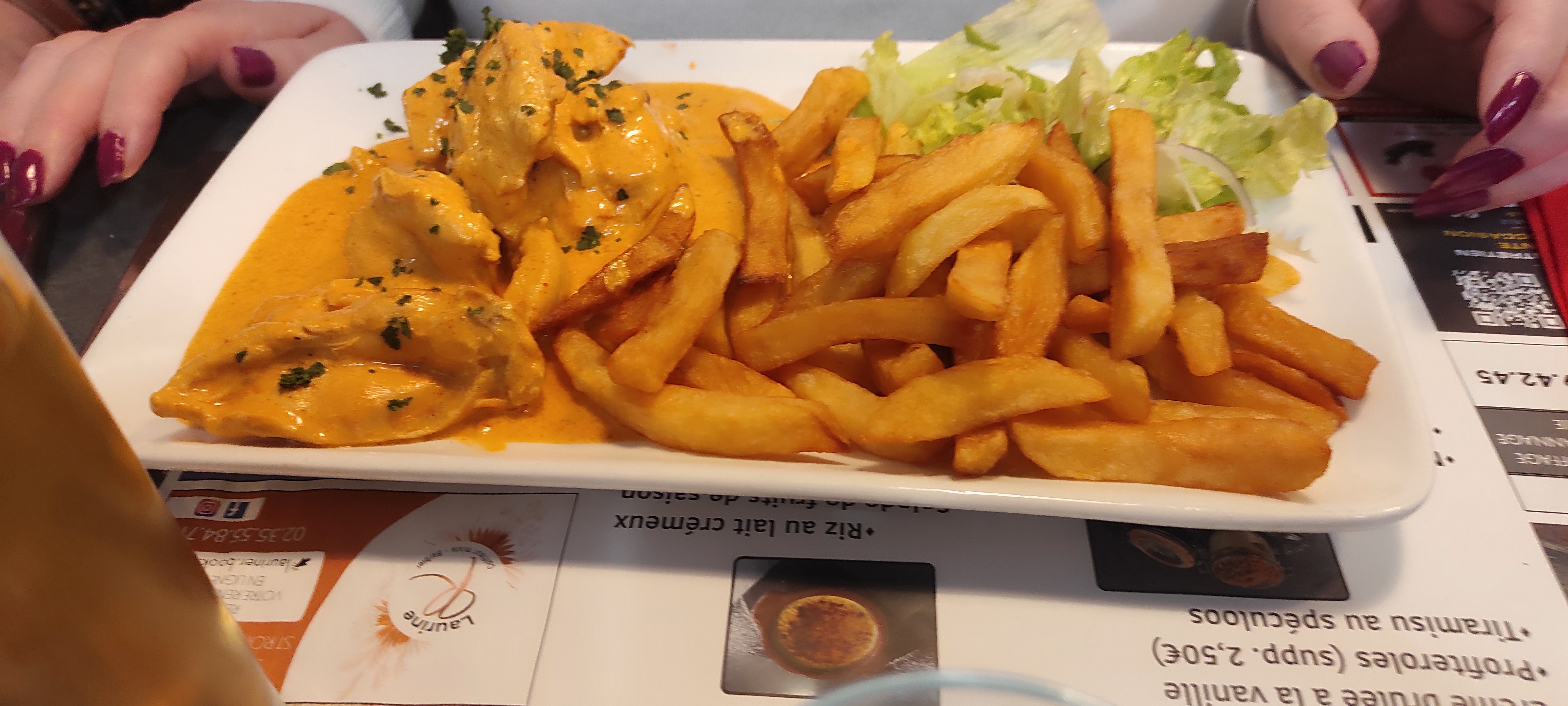 Bonjours nous avons manger hier a 12h30 a 4 adultes et de petits de 2 ans .Piscines en famille nous sommes arrêtés pour chercher un restaurent la serveuse avec son masque sous une chaleur de 42 très bonne accueil malgré son masque !Bravo bien manger bonne frites maison service rapide tarifs bien et merci pour les glaces de enfants à bientôt ! 😉