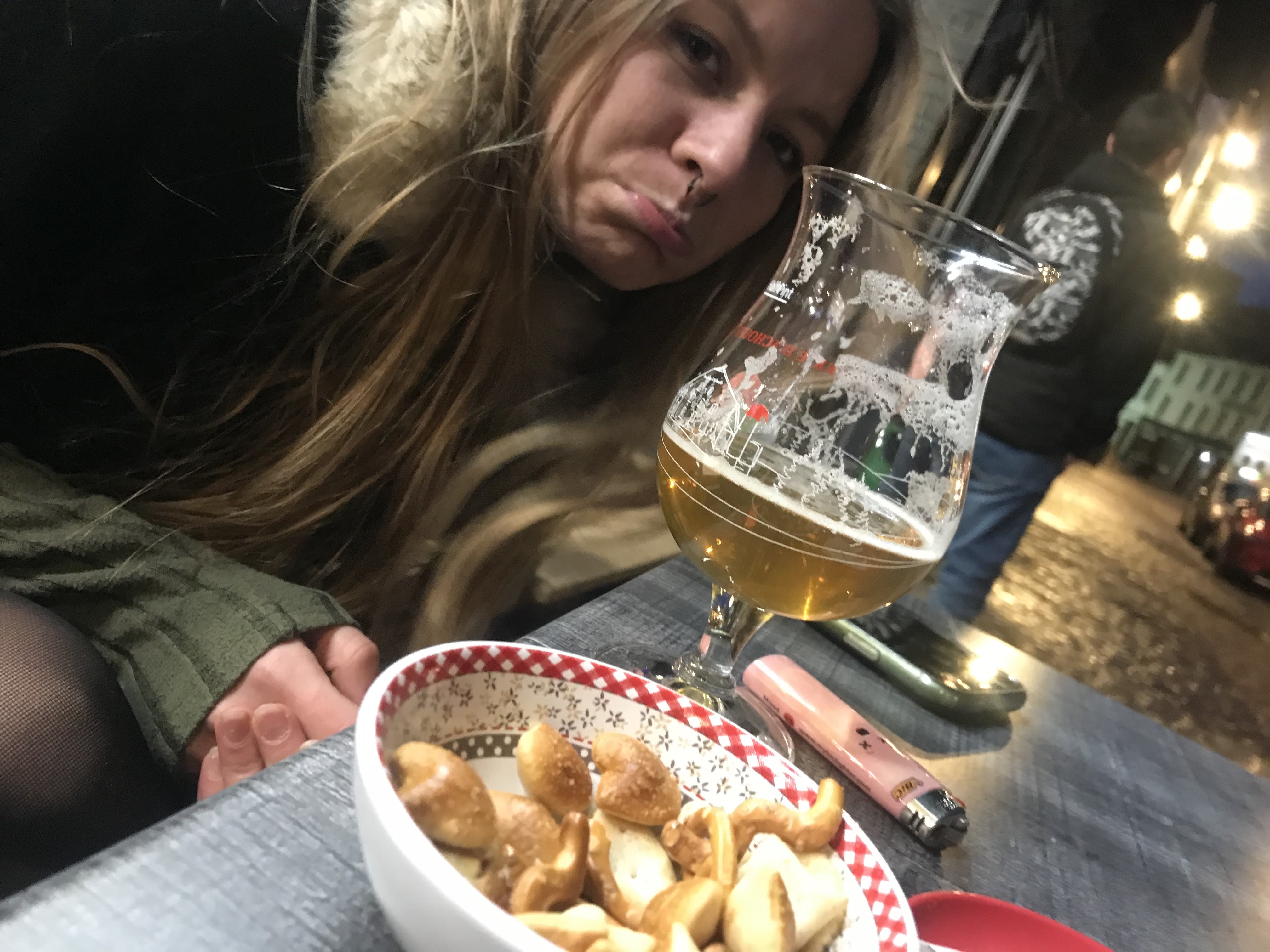 Bonjour, toujours très bien accueilli, vaste choix de bières et service au top. Le seul hic (bémol), on nous propose des cacahuètes et là grande surprise on nous sert exclusivement des bretzels et des petits biscuits salés. Dommage parce que celle enrobée au paprika sont excellentes. Bien à vous.
