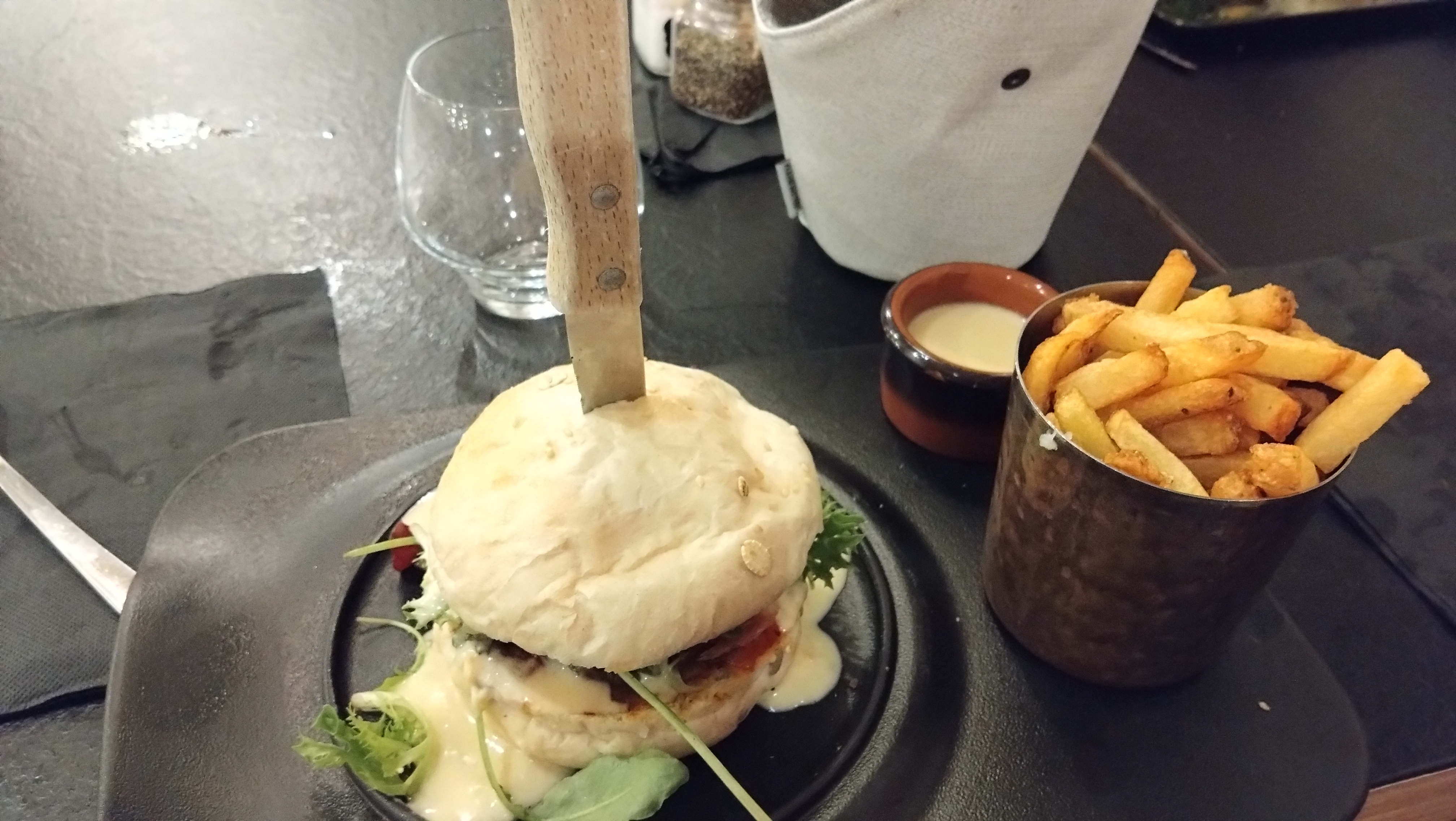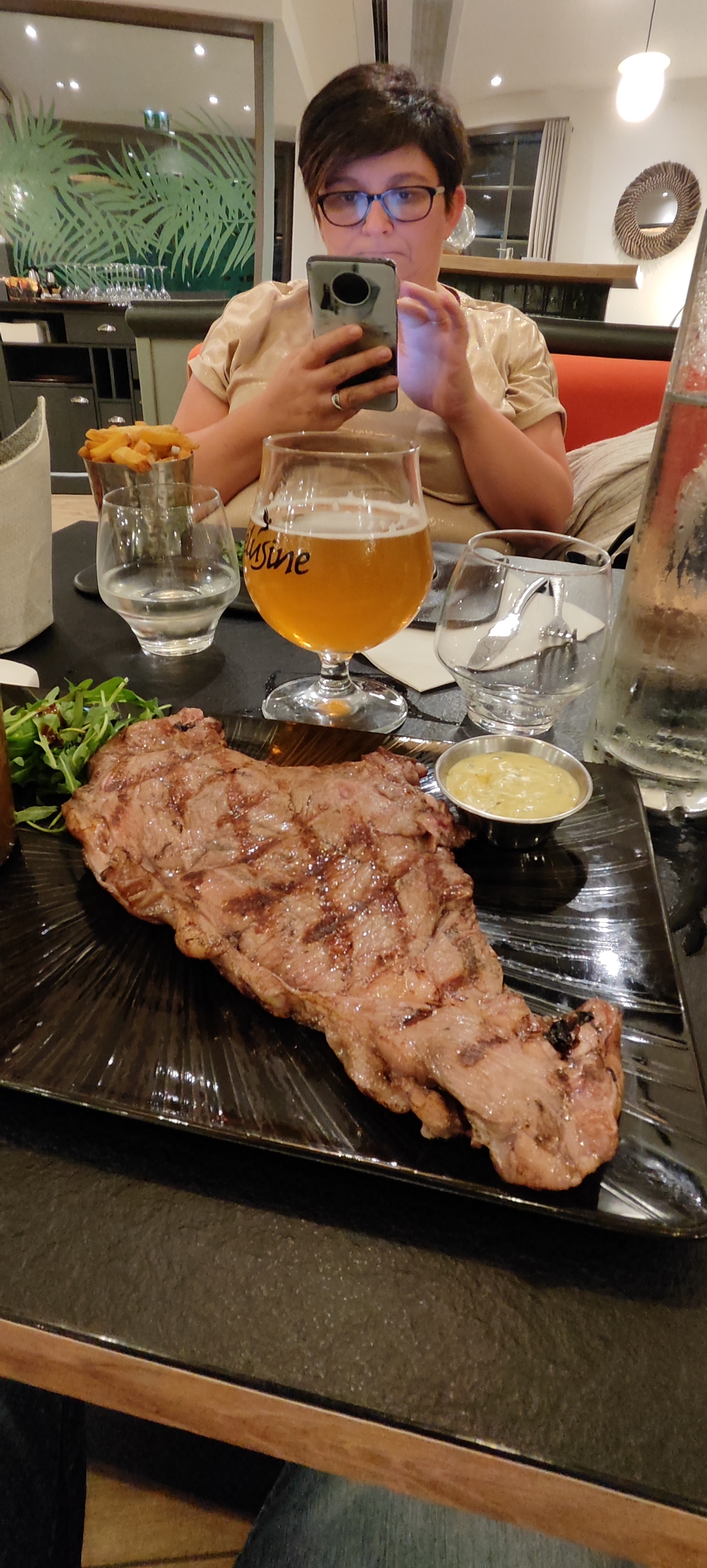 Bonjour Mon avis est mitigé mon mari est satisfait de sa viande et les frites maison bonnes dessert bon moi bcp moins aiguillettes de poulet (panure maison) très desséchées et quasiment froides la PDT four petite et tiède peut-être faut-il choisir de la grillade uniquement ce qui est dommage !
