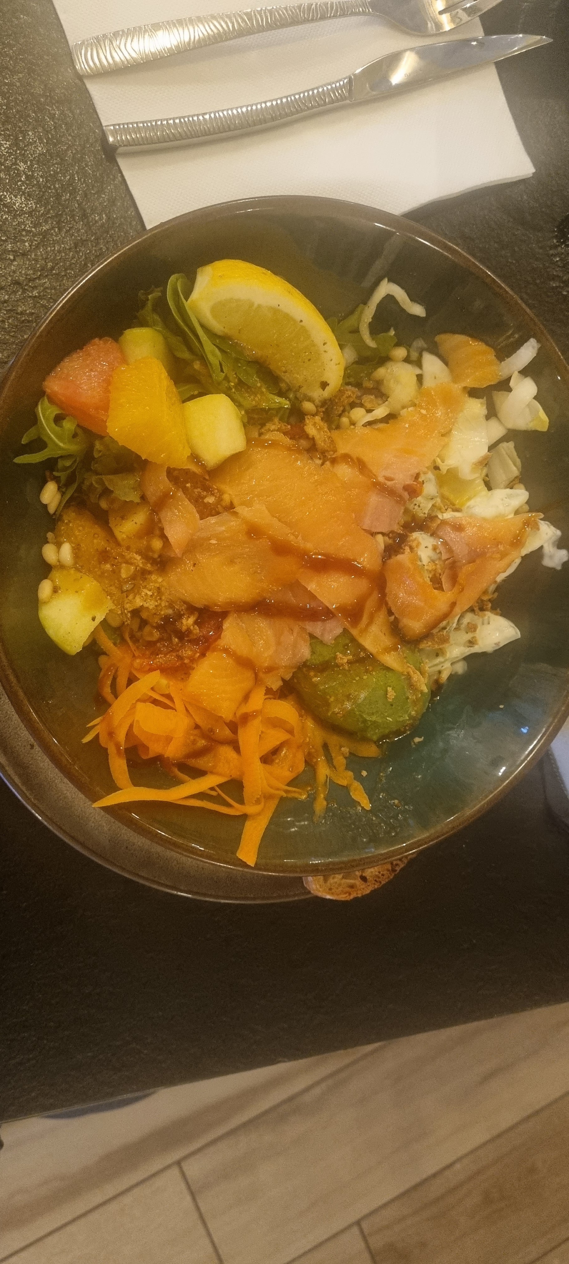 Excellente qualité dans l assiette. La grande salade que ce soit avec saumon ou bœuf est délicieuse.