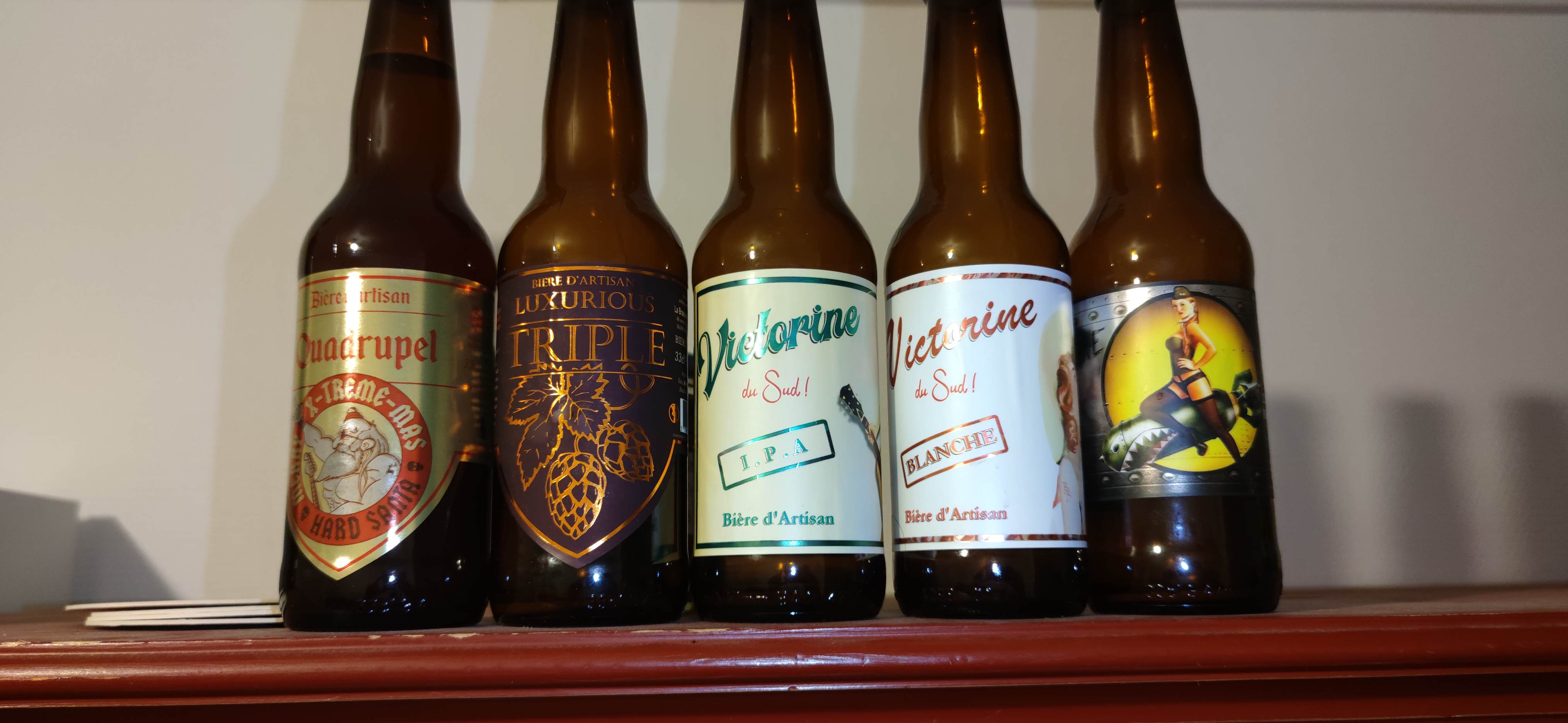 Bierres acquises lors du vide-grenier de Luceram. Nous avons beaucoup aimé la Victorine en brune. C'est je crois notre préférée. J'ai apprécié les explications données sur l'origine du nom et le caractère de cette bière. Donc si possible des bières à acheter à la brasserie de Berre.