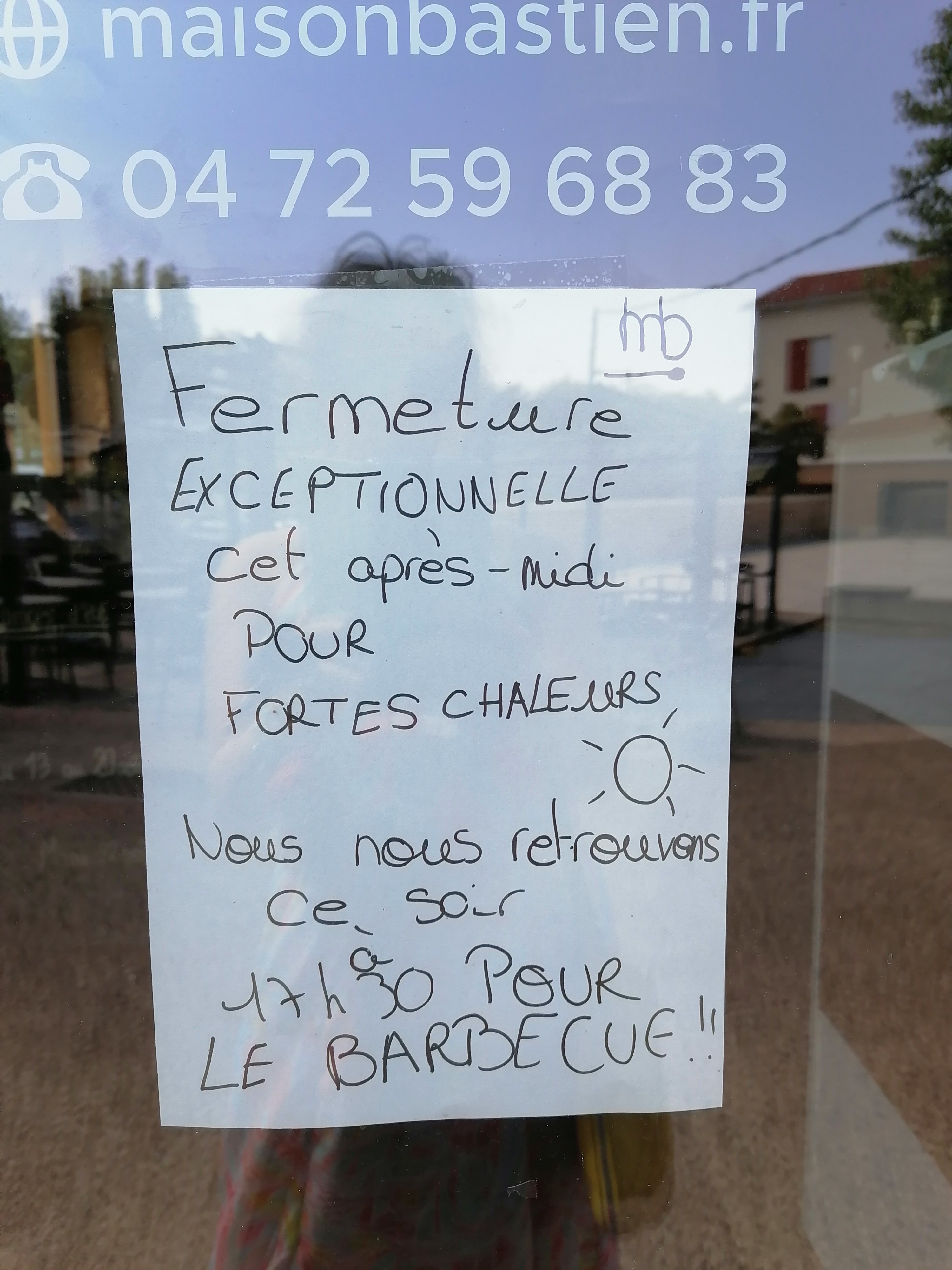 Une étoile pour l'emplacement. Une autre pour la carte. Par contre, je n'avais jamais vu ça auparavant : fermé pour causes de fortes chaleurs... Et les clients pour le point de retrait potager city complètement oubliés. Inadmissible