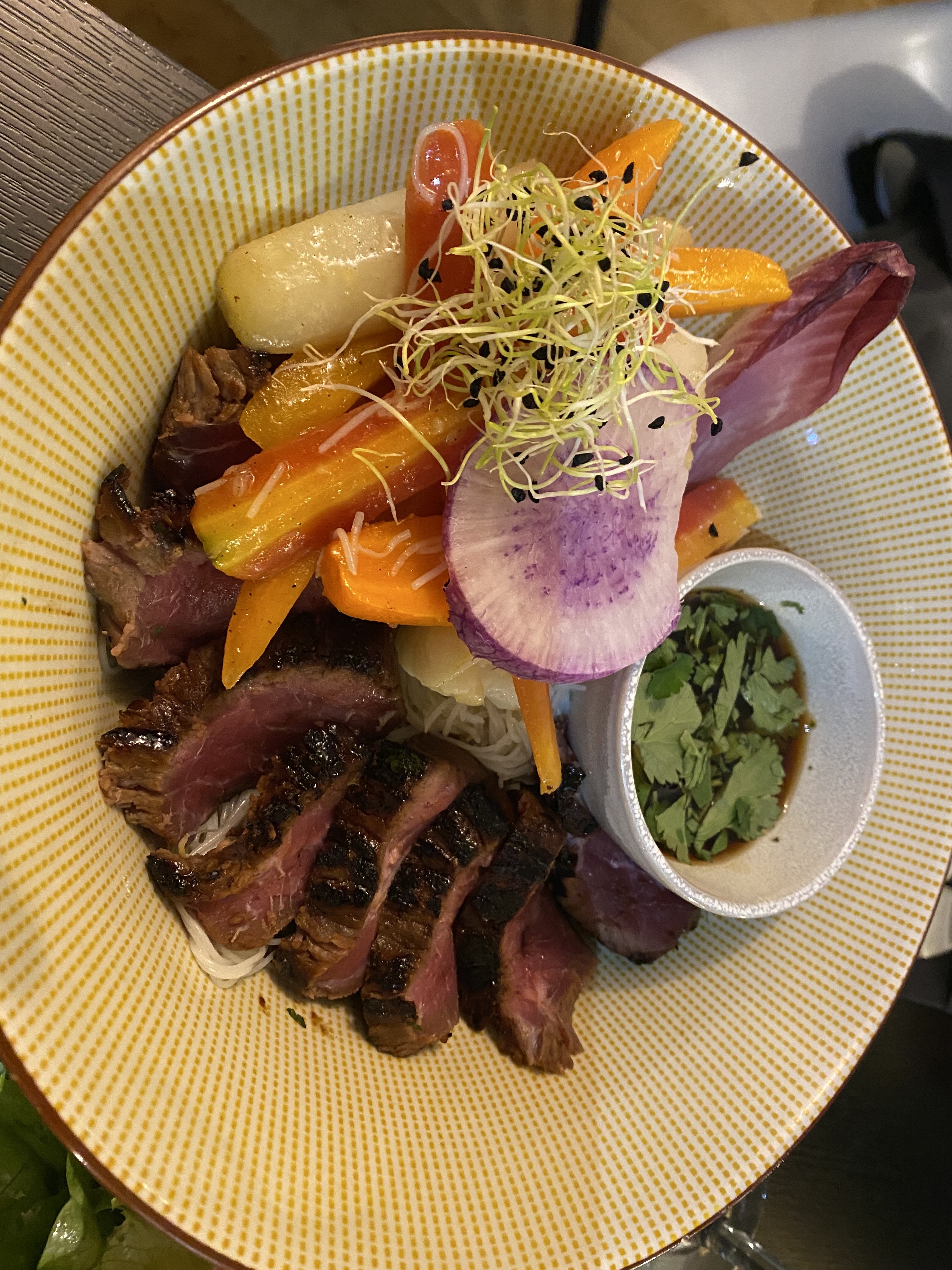 Très bon halte après le marché du matin. Un poke saumon thon délicieux et une salade de bœuf thai où il manquait de piment afin de relever le plat. Les desserts ajoutent un plus sur la fin de repas. Crème brûlée noisettes originale.