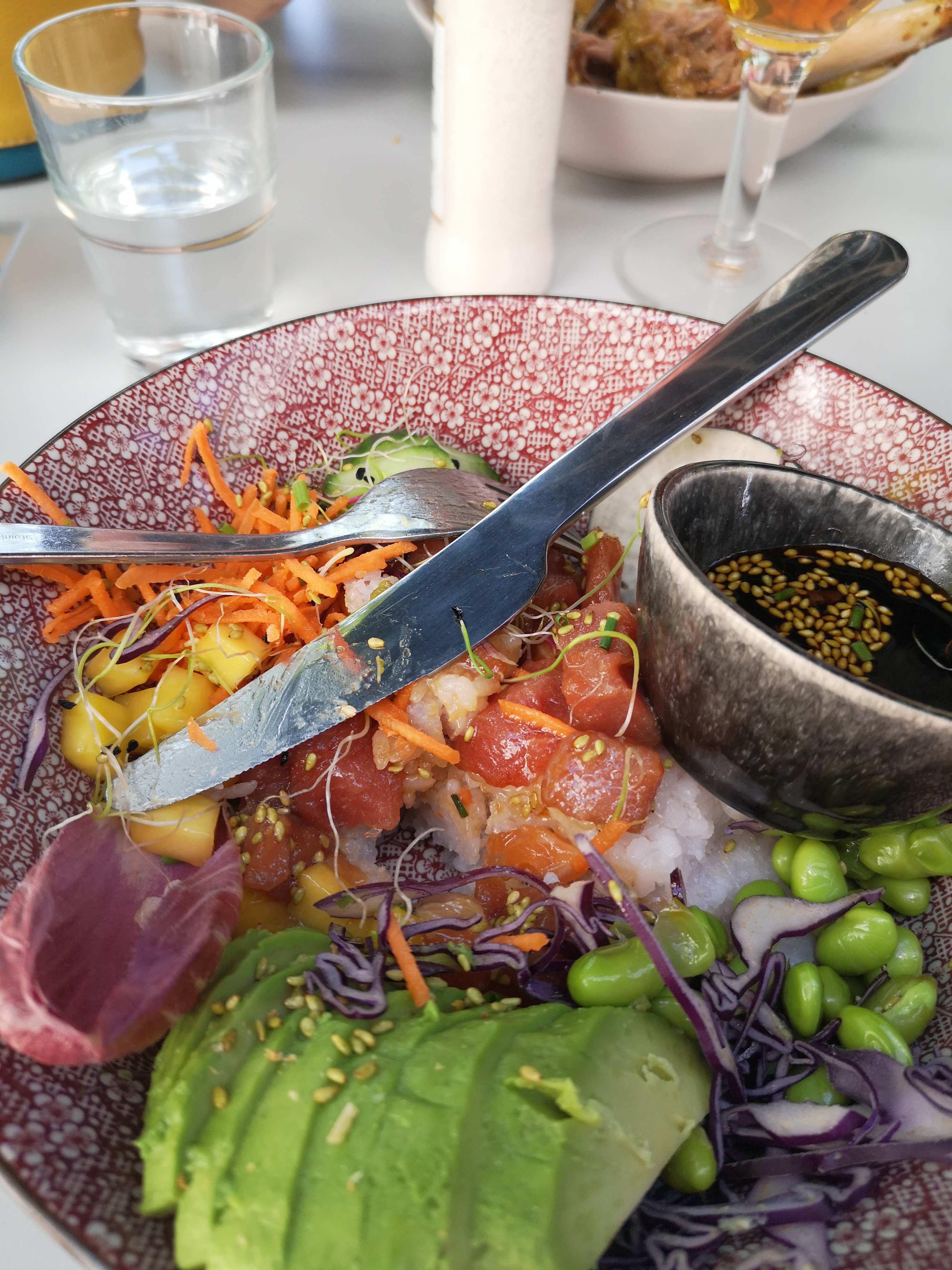 Très jolie restaurant, tres chaleureux. Dommage ça ne suis pas dans l'assiette. Min mari a pris un pokebowl qui devait avoir de la mangue, du navet et il a eu du concombre et de l'orange , pas l'ombre d'une mangue mais surtout on a pas été prévenu d'une éventuelle rupture de stock sinon il ne l'aurait pas pris.