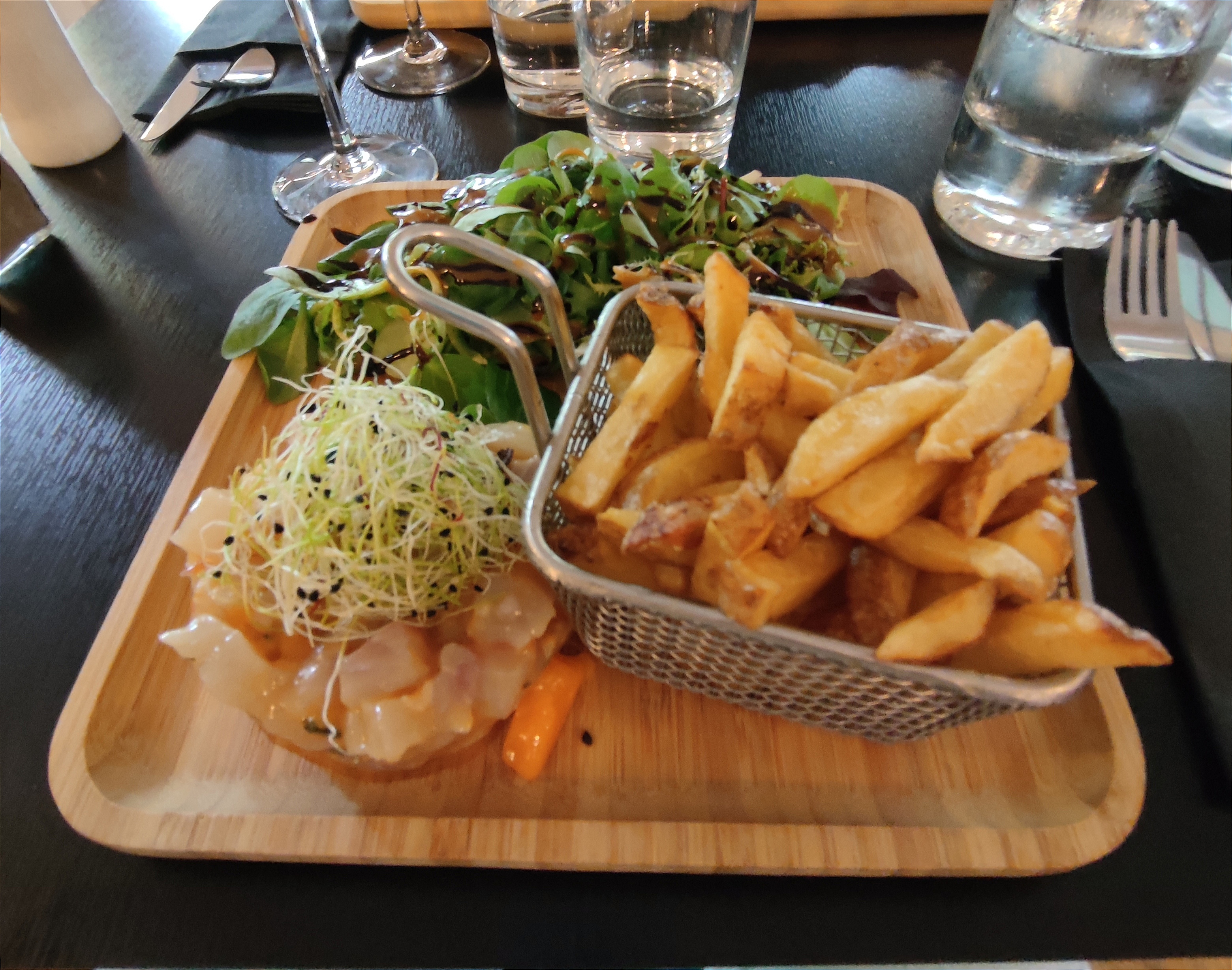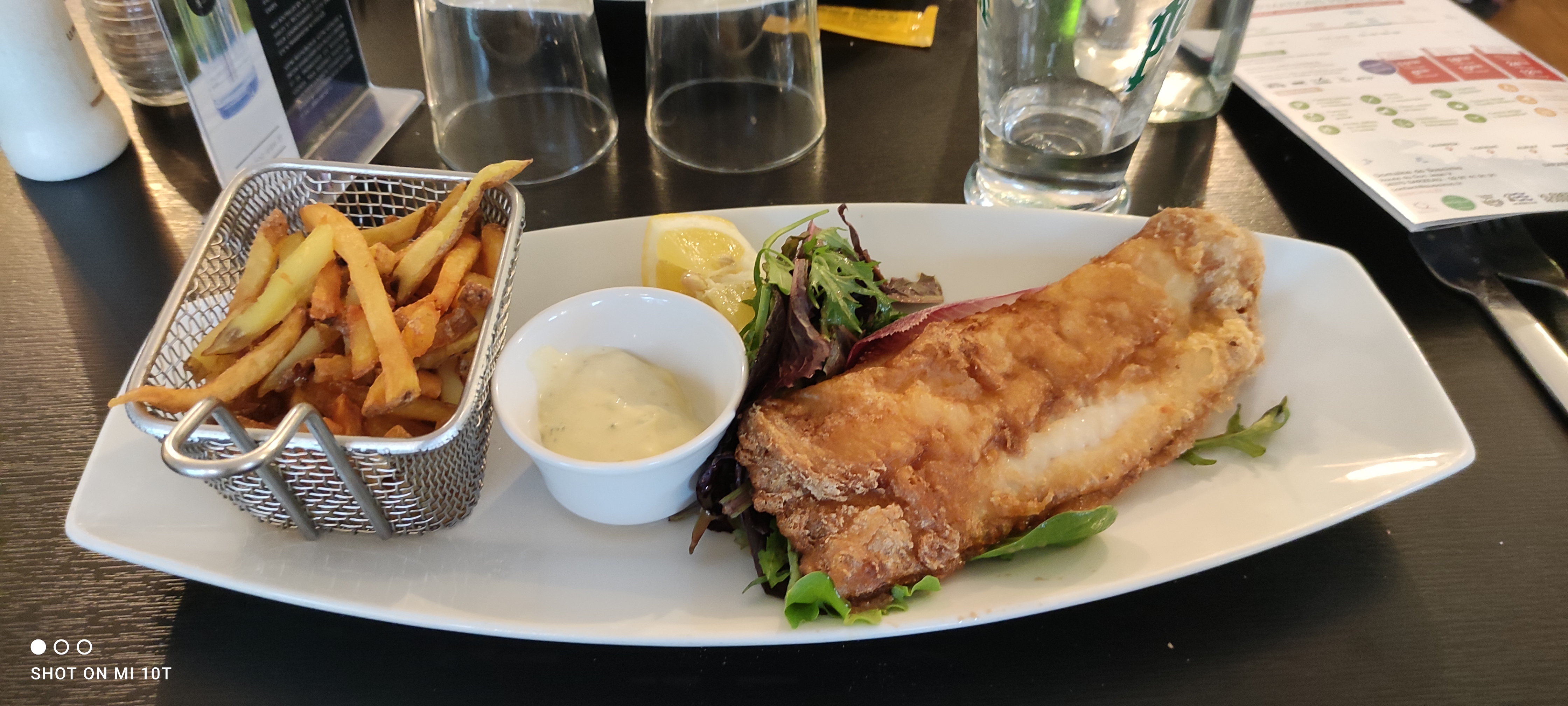 Repas du midi en famille ce jour. Les enfants se sont régalés d’un fish & chips ayant fait saliver les parents. Pour notre part un poisson du jour et du marché sans fausses notes. Nous nous sommes régalés et conseillons à quiconque de s’y rendre les yeux fermés. Bon appétit!