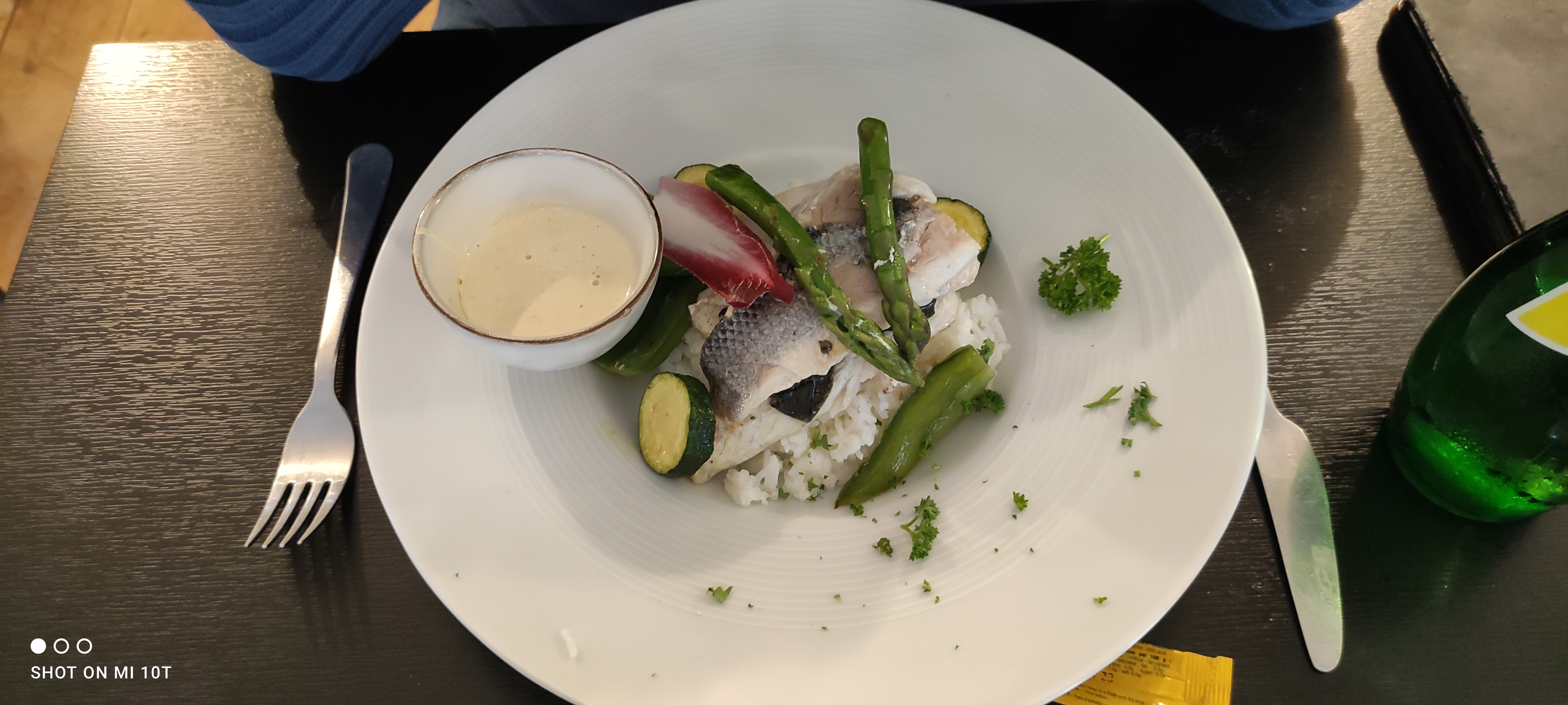 Le bar était délicieux. Les frites manquaient de cuisson, dommage.