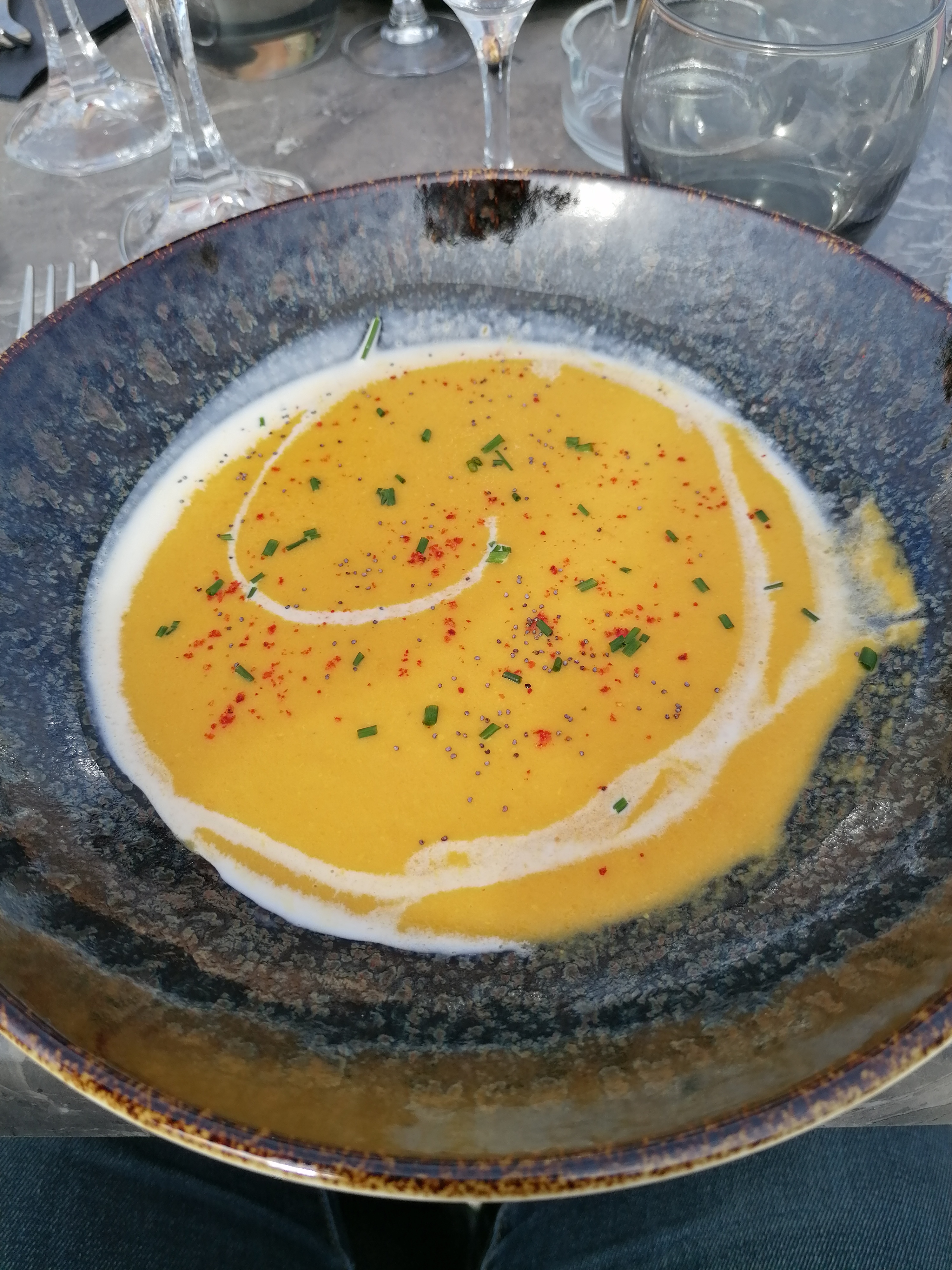 Bel établissement extérieur et intérieur avec un bon accueil et un bon service. Nous avons pris le menu à 36€. La soupe aux oignons était bonne, par contre l'assiette de gambas laissait à désirer... les gambas n'etaient pas fraîches et le riz manquait de saveur. En plat principal, le poisson accompagné d'une purée de patate douce était bon ainsi que le dessert, une tarte tatin ( dommage... pâte industrielle) Dans l'ensemble, nous avons passé un bon moment mais il manque un petit quelque chose pour que cette cuisine soit plus goutue.