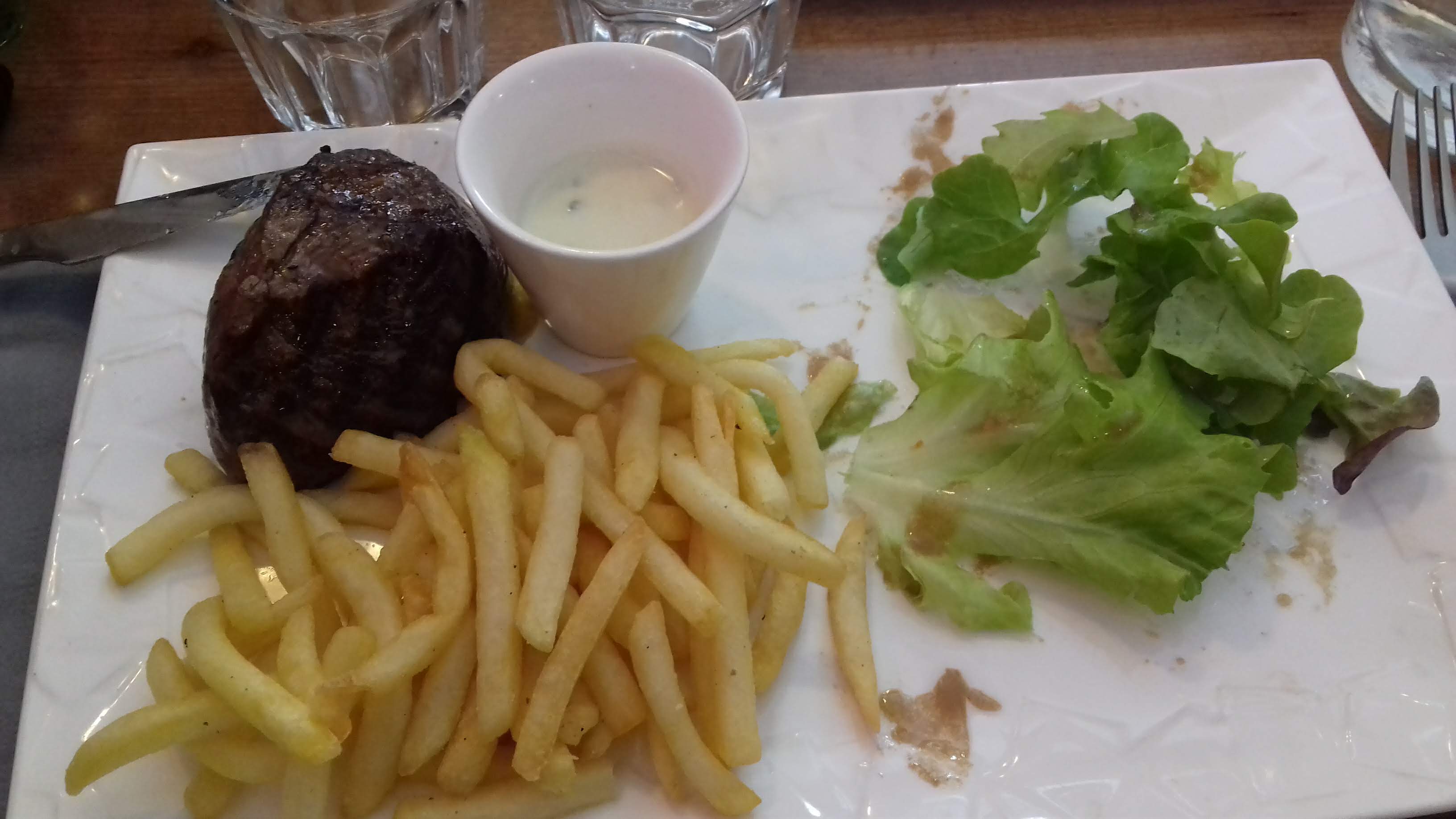 Le viande était très bon, mais les frites un peut médiocre. Pas mal, mais aussi pas très bon. C’est dommage car c’est ni trop compliqué ni trop chère de faire les frites excellentes (double cuite dans le blanc de bœuf) et on voit que le restaurant est ambitionné en générale.