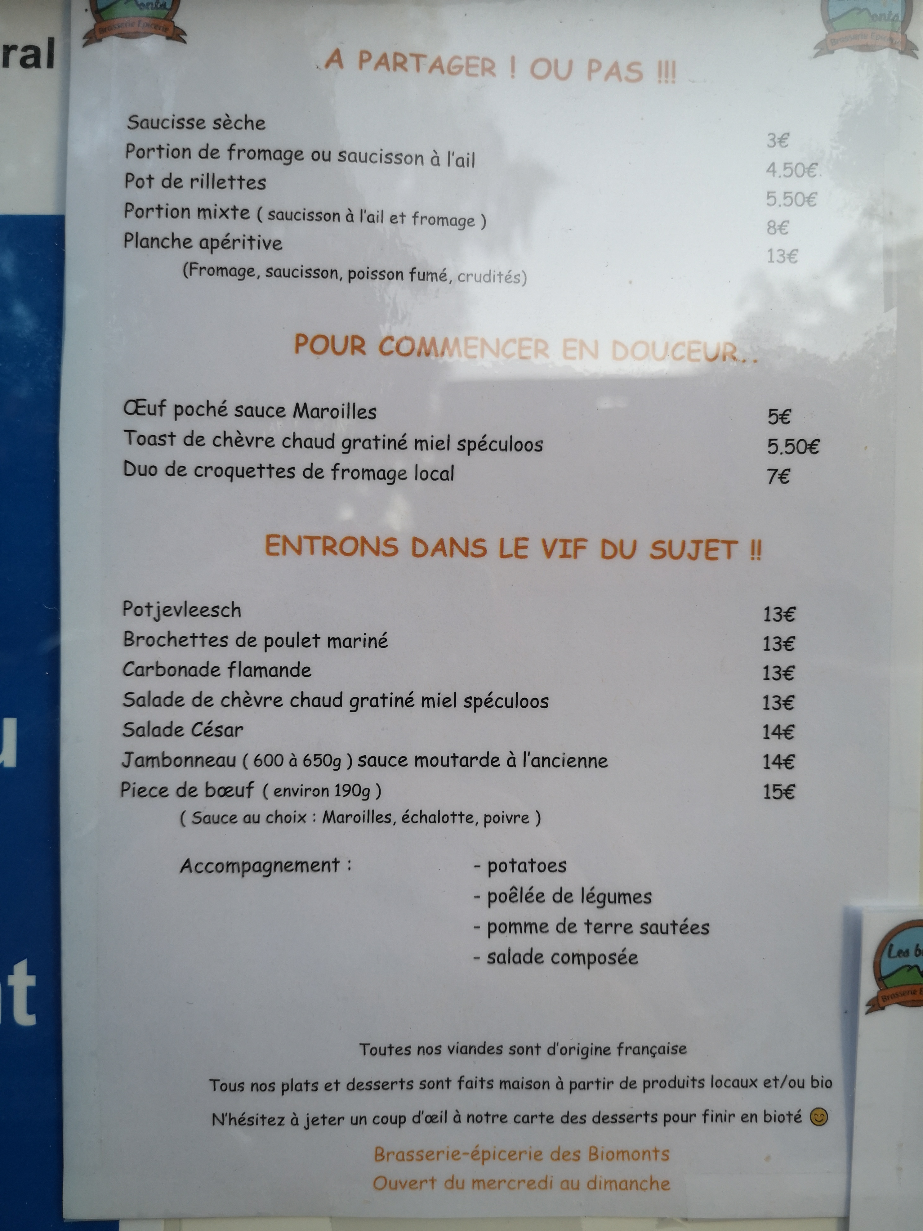 Nous nous sommes rendus aux bio monts a Berthen avec un groupe d'amis...quelle belle surprise...nous avons été merveilleusement accueillis par la propriétaire des lieux ainsi que par cette équipe dynamique et enthousiaste... Sans oublier la carte de ce chef qui nous a rempli d'aise... Quel bonheur Merci à vous pour votre gentillesse votre sens de l'accueil et ces bons petits plats qui nous ont émerveillés Nous conseillons fortement Hervé et ses 8 amis...