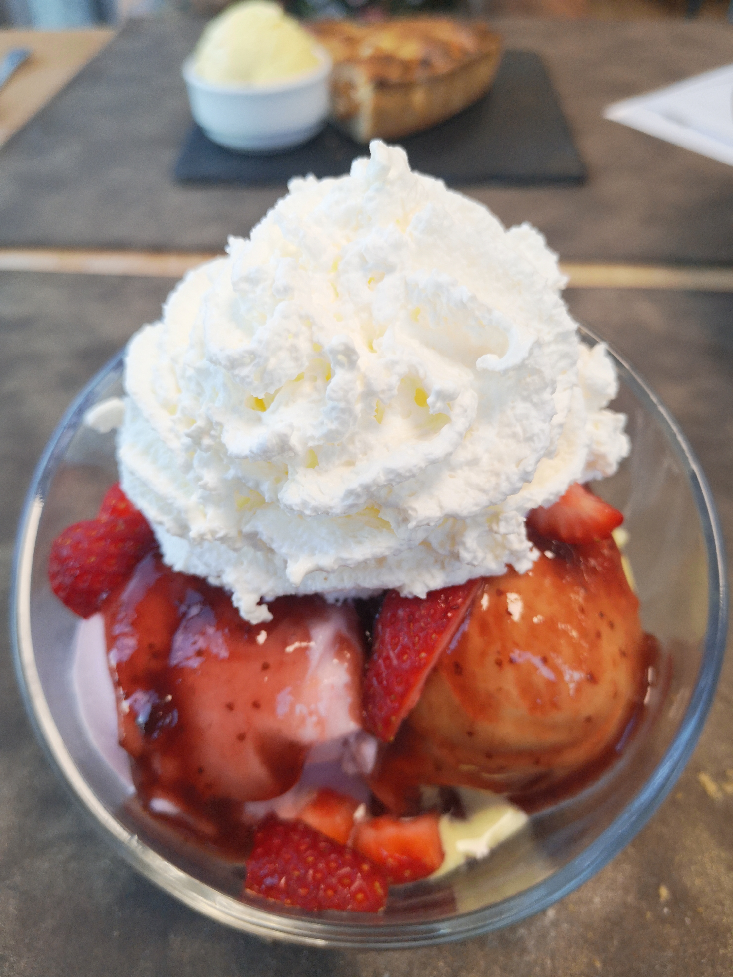 Après un voyage difficile, nous avons eu la chance de manger un délicieux morceau de tarte aux fraises maison. Dame très sympathique dans un magasin plein de bons produits.