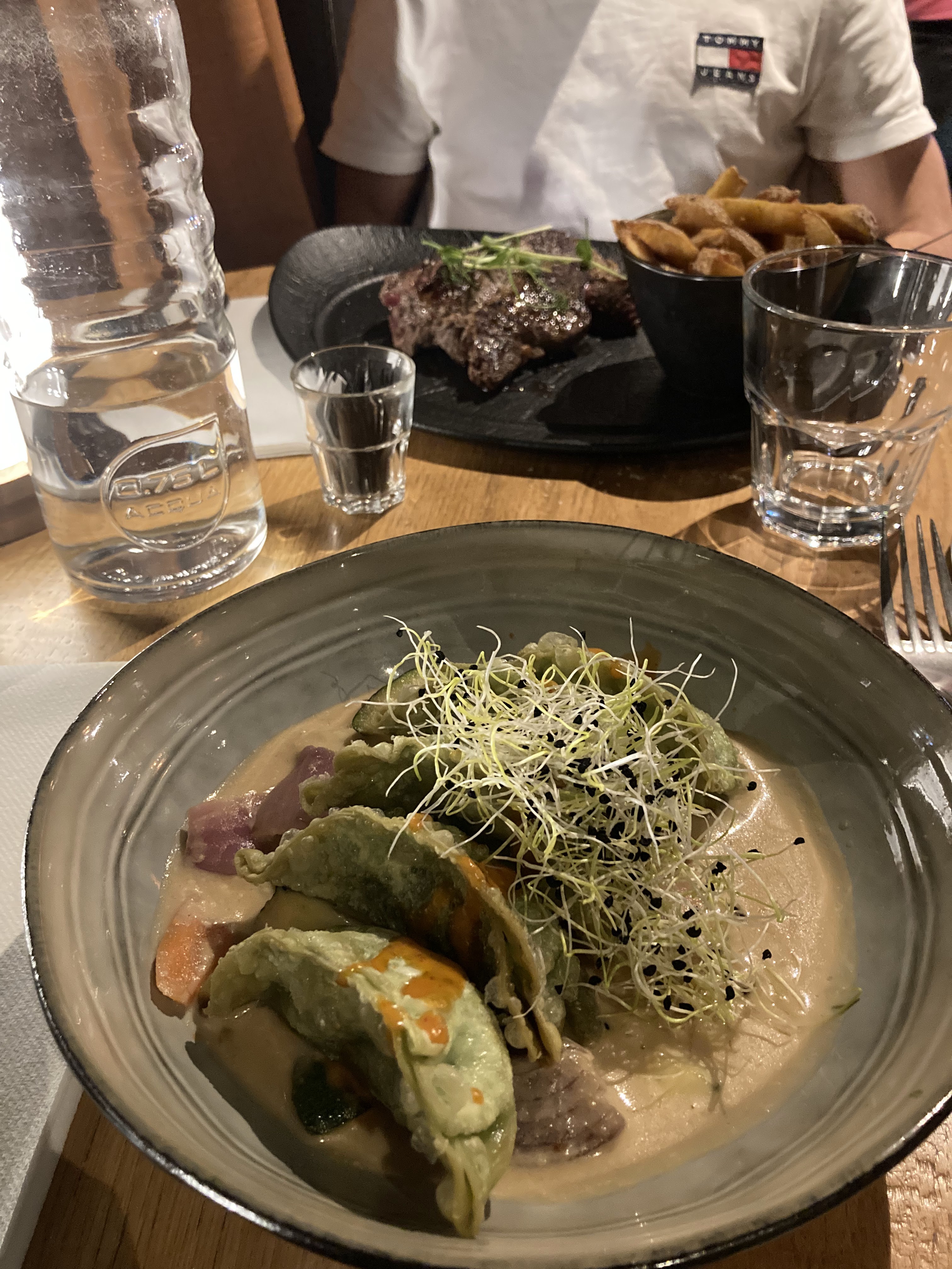 Temps d’attente très long, quantité insuffisante dans l’assiette, bœuf à la ficelle trop cuite, à contrario du wok de poulet et des légumes qui là ne l’étaient pas assez. La note assez onéreuse (environs 37€/pers) ne me semble pas justifier la qualité du service rendu.