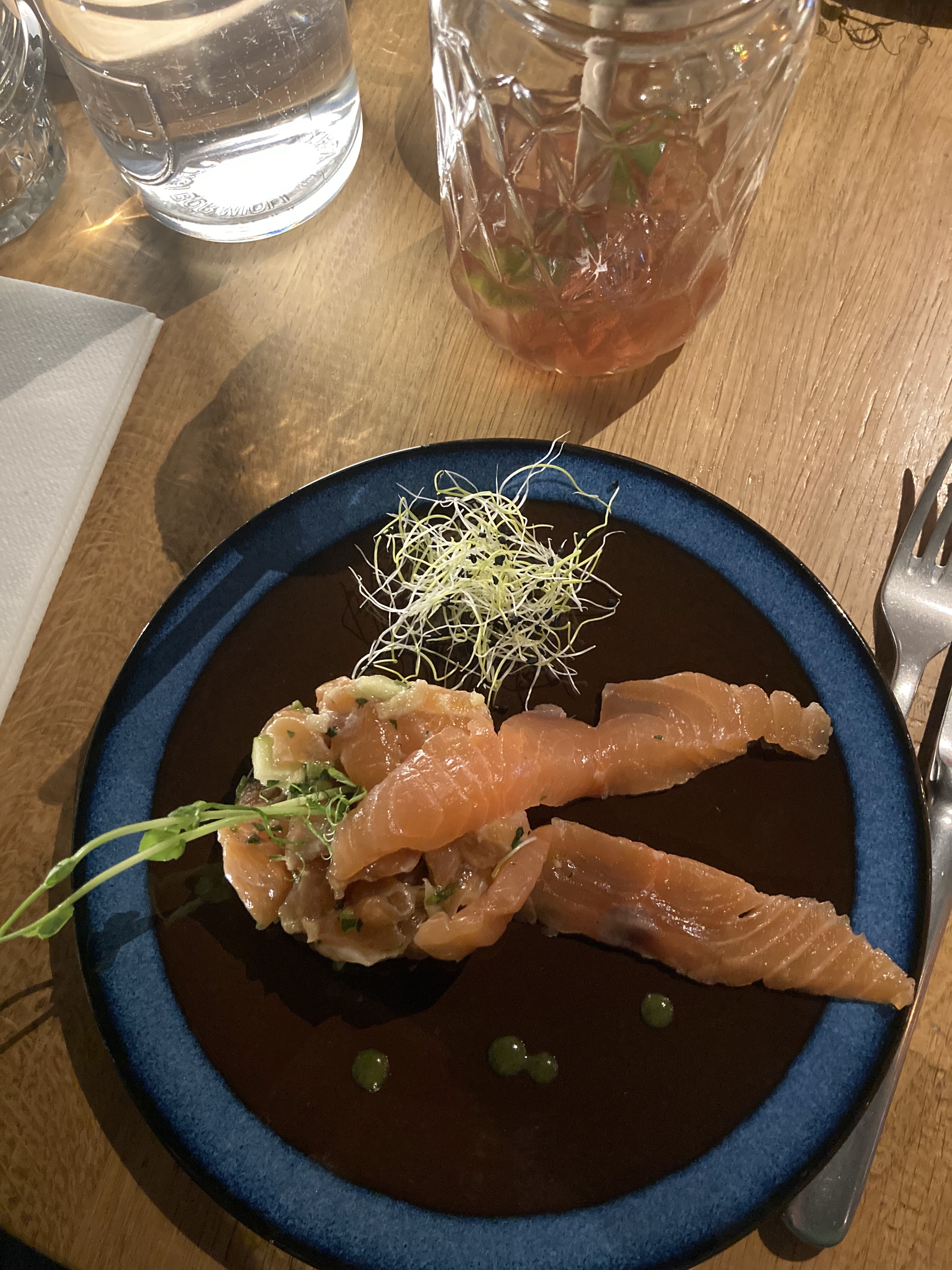 Très déçu! L'établissement était très agréable et on y mangeait bien avant le changement de propriétaire. J'ai pris le soi-disant tartare de poisson et son guacamole au yuzu et sa chips de veau. Une énorme déception, le poisson n'était pas préparé en tartare mais effiloché cuit, le guacamole était très fade et cerise sur le gâteau la chips de veau n'était en fait qu'un bout d'escalope de veau froid trop cuit.... Pour le prix c'est une honte. Tarte tatin soi disant maison, n'était pas assez cuite et les pommes n'étaient pas caramélisées... Je n'y retournerais plus !