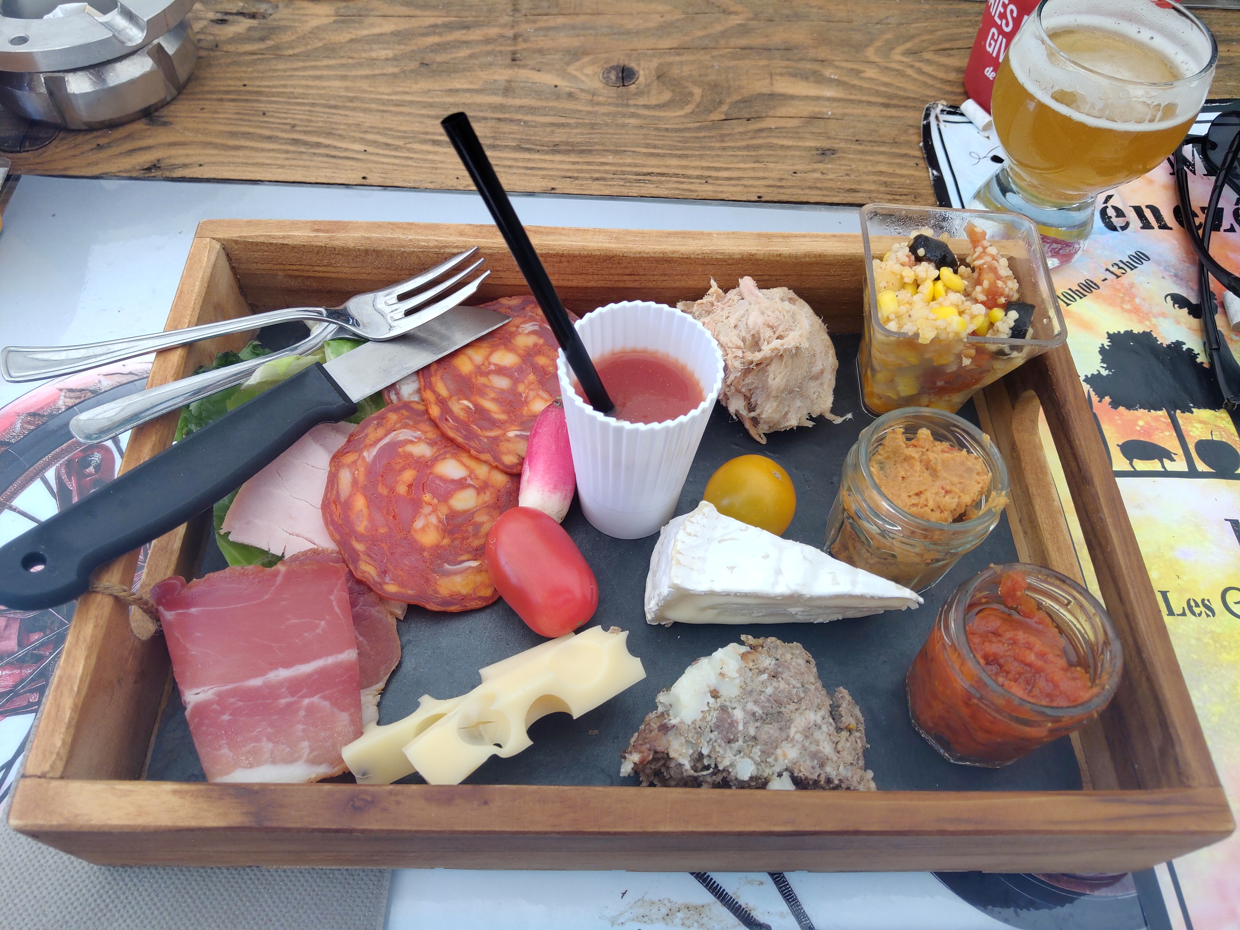 Planche aussi complète qu'une planche a palet chez un vendéen. Un plaisir pour les yeux et pour le ventre. Tout cela accompagné d'une bière artisanale incroyable et d'un tenancier au top